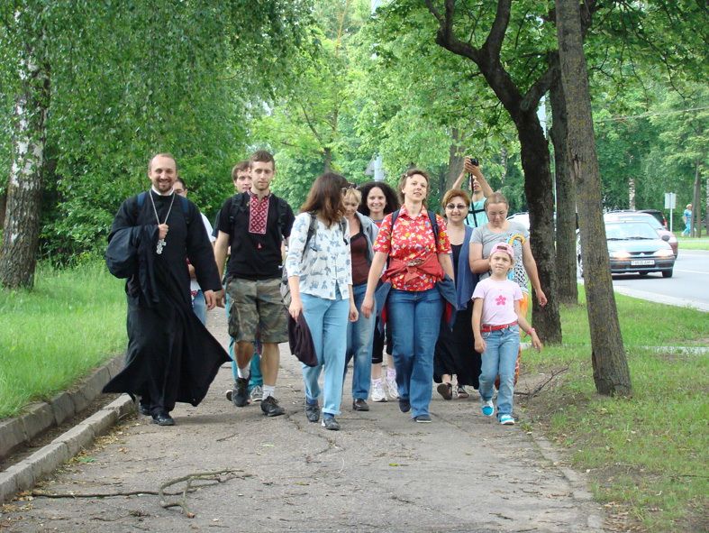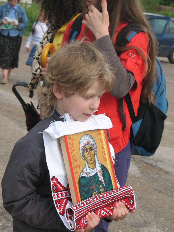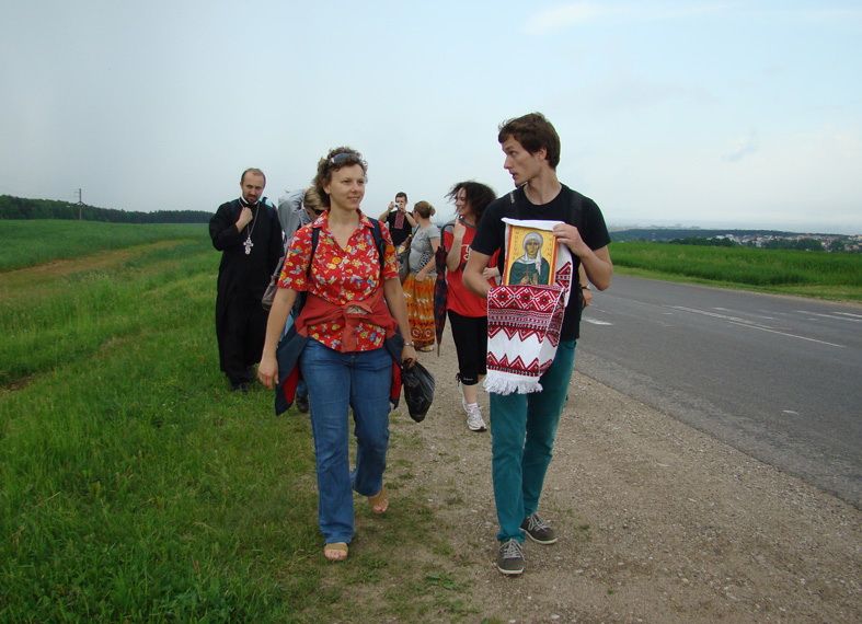 Частка вернікаў парафіі Маці Божае Фацімскай разам з удзельнікамі гарадзенскага Хрысціянскага валанцёрскага руху св. Мікалая, нягледзячы на моцныя дажджы, прыйшлі ў Навумавічы з Гародні пешшу.