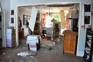Перакрыцці будынку, пабудаванага на пачатку мінулага стагоддзя, відавочна не перанеслі “зрухаў”, якія адбываліся літаральна праз сцяну.