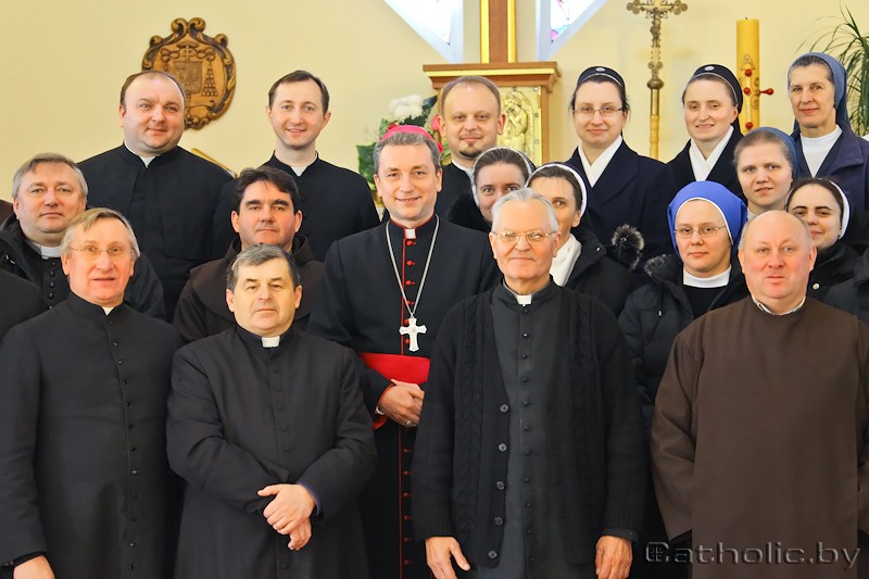 4 лютага з нагоды Дня кансэкраванага жыцця, які адзначаецца штогод у свята Ахвяравання Пана, у мінскай парафіі Св. Яна Хрысціцеля праходзіла сустрэча кансэкраваных асобаў Мінска-Магілёўскай архідыяцэзіі. На сустрэчу прыбыў дапаможны біскуп архідыяцэзіі Юрый Касабуцкі, які ўзначаліў Імшу. У праграме была адарацыя Найсвяцейшага Сакрамэнту. Удзельнікі сустрэчы прамовілі малітву Літургіі Гадзінаў. Таксама яны мелі магчымасць прыступіць да сакрамэнту пакаяння. У гаміліі біскуп звярнуў увагу, што ў сцэне ахвяравання Езуса ў святыні, якая прыводзіцца ў чытанні Евангелля на свята Ахвяравання Пана, Марыя “ахвяруе Богу самае каштоўнае, што было ў Яе, а таксама ахвяруе Яму сваё жыццё”. Прарочыцу Ганну, якая, як гаворыцца ў Евангеллі, постам і малітвай служыла Богу ў святыні, можна назваць, па словах іерарха, правобразам манаскага жыцця. “Манаскае жыццё – гэта жыццё, прысвечанае Богу, - адзначыў біскуп. – У гэты дзень, узгадваючы, як Марыя і Юзаф прынеслі ў Ерузалемскую святыню Дзіцятка Езуса, мы асабліва ўзгадваем тых, хто ахвяраваў сваё жыццё Пану”. Па словах іерарха, “жыццё ў манаскіх супольнасцях павінна стаць святлом для асвятлення чалавека ўсіх часоў, усіх пакаленняў”. Біскуп назваў манаскае жыццё фактарам, які “ўмацоўвае дзейнасць Касцёла як у мінулым, так і сёння”. “Манаскае жыццё знаходзіцца ў самым сэрцы Касцёла, з’яўляецца маторам, які выклікае пульсаванне крыві ўсяго Касцёла, - падкрэсліў біскуп. – Гэта вельмі важная функцыя, бо Касцёл павінен быць жывым арганізмам”. “Кожны з нас павінен быць святлом, якое прынясе сучаснаму чалавеку Бога, - сказаў іерарх, звяртаючыся да кансэкраваных асобаў. – Сёння вы аднаўляеце свае манаскія абяцанні. Гэта нагода не толькі ўзгадаць, што вы прысягалі Богу, але і яшчэ раз папрасіць у Яго патрэбныя ласкі. Бо вы сапраўды сталіся падобнымі да Хрыста ва ўсім”. “Сучасны свет не разумее такога жыцця, - дадаў біскуп. – І, можа, сапраўды такая форма жыцця стане для сучасных людзей святлом, якое асветліць іх цемру”. “Вы прыпадабняецеся да Хрыста ў Яго чысціні, убостве, паслухмянасці. Але гэтага мала. Вы, як Ён, узялі на сябе крыж, - звярнуў увагу іерарх. – Гэта змаганне, каб быць у святле Хрыстовым, але такое змаганне мае сваю прыгажосць, бо яно дае неба”. “Манаскае жыццё – гэта адказнасць і заданне, яно немагчыма без малітвы, - нагадаў біскуп сабраным законнікам і законніцам. – Вы – святло свету: такія словы Езус кажа вам сёння”. Па словах біскупа, “калі сучасны чалавек убачыць шчаслівага манаха, манахіню, якая падыходзіць да яго і радасна ўсміхаецца”, – гэтага, напэўна, будзе дастаткова, каб “Езус змог пастукацца ў сэрца гэтага чалавека”. Біскуп ад імя Мітрапаліта Мінска-Магілёўскага арцыбіскупа Тадэвуша Кандрусевіча павіншаваў удзельнікаў сустрэчы з іх святам, дадаўшы, што цэлебруе гэтую Імшу за ўсіх законнікаў і законніц архідыяцэзіі. Напрыканцы сустрэчы прамовіў віцэ-правінцыял Ордэна капуцынаў у Беларусі а. Андрэй Жылевіч OFMCap. “Мы ўсе служым дзеля дабра Касцёла”, - ад імя сабраных кансэкраваных асобаў сказаў святар. Кажучы пра сустрэчу прадстаўнікоў інстытутаў кансэкраванага жыцця ў Беларусі з Апостальскім Нунцыем арцыбіскупам Клаўдыё Гуджэроцці, якая адбылася 22 кастрычніка 2013 г., віцэ-правінцыял нагадаў, што на ёй было вырашана стварыць структуру, якая падтрымае законнае жыццё ў Ка