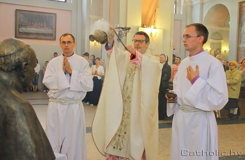 Апостальскі Нунцый узгадаў, што менавіта Ян Павел ІІ удзяліў яму біскупскае пасвячэнне, і прызнаўся, што, рыхтуючыся да гэтай Імшы, думаў над тым, што асабліва могуць сказаць гэтыя два святыя менавіта ў дадзеным геаграфічным месцы, у Беларусі.