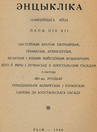 «На той год прыпадалі 350-я ўгодкі Брэсцкай Уніі 1596 года. З гэтай нагоды Папа Пій ХІІ выдаў 25 снежня энцыкліку Orientalis omnis. Айцец Гарошка пераканаў Усходнюю Кангрэгацыю, што неабходна перакласці энцыкліку на беларускую мову. Ён таксама настаяў, каб, беручы пад увагу абставіны ХХ стагоддзя, лацінскае слова "Rutheni" (рускія) перакладалася як "беларусы і ўкраінцы". Кангрэгацыя доўга вагалася, але нарэшце згадзілася. Перамога была невялікая, але важная. Да айца Гарошкі ў Рым прыязджала даволі шмат беларускіх святароў і студэнтаў, але ніводзін з іх не зрабіў высілкаў, каб царкоўныя ўлады прызналі Беларусь як асобную нацыю са сваімі патрэбамі і памкненнямі. Можна смела сказаць, што назва "Беларусь" з'явілася на мапе Каталіцкага Касцёла дзякуючы айцу Льву Гарошку».