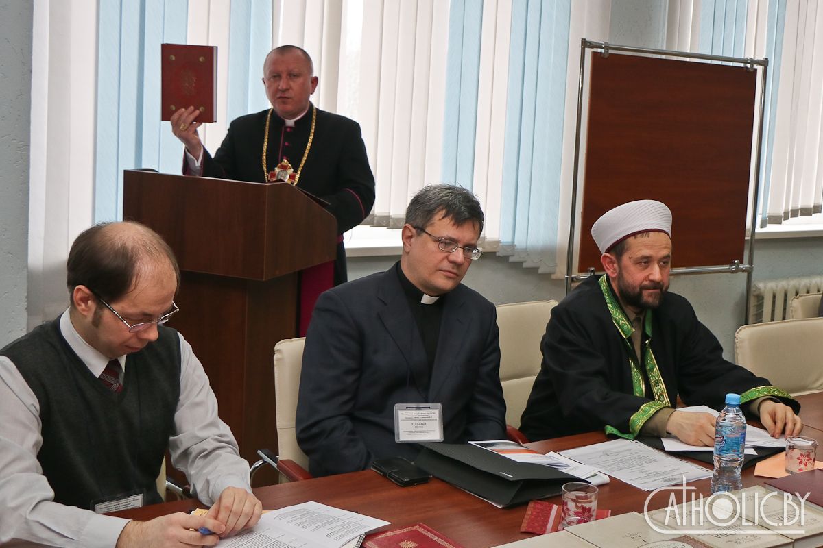 Ад імя старшыні Канферэнцыі Каталіцкіх Біскупаў у Беларусі арцыбіскупа Тадэвуша Кандрусевіча, Мітрапаліта Мінска-Магілёўскага, Рыма-Каталіцкі Касцёл на навуковым форуме прадставілі старшыня Секцыі па перакладзе літургічных тэкстаў і афіцыйных дакументаў Касцёла пры ККББ кс. канонік Ян Крэміс, доктар тэалогіі, і супрацоўніца названай Секцыі доктар біблійнай тэалогіі Марына Пашук. Грэка-Каталіцкую Царкву па даручэнні Апостальскага візітатара для грэка-католікаў Беларусі амафорнага архімандрыта Сяргея Гаека МІС прадставілі канцлер курыі Апостальскага візітатара а. Яўген Усошын і а. Андрэй Крот, магістр тэалогіі, дактарант Экуменічнага інстытута Люблінскага Каталіцкага ўніверсітэта. З прывітальнымі словамі да ўдзельнікаў канферэнцыі звярнуліся член-карэспандэнт, акадэмік-сакратар аддзялення гуманітарных навук і мастацтваў НАН Беларусі Аляксандр Каваленя, старшыня Таварыства беларускай мовы імя Францішка Скарыны і дэпутат Палаты прадстаўнікоў Нацыянальнага сходу Рэспублікі Беларусь VI склікання Алена Анісім, першы намеснік па навуковай рабоце Цэнтра даследаванняў беларускай культуры, мовы і літаратуры НАН Беларусі акадэмік Аляксандр Лукашанец, дырэктар Інстытута мовазнаўства імя Якуба Коласа Ігар Капылоў і прадстаўнікі духавенства.