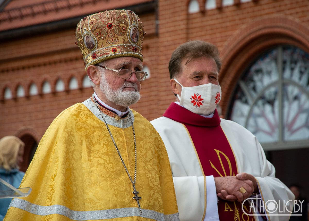 Да ўдзельнікаў урачыстай Імшы, якіх сабралася некалькі соцень, духоўна далучыліся з дапамогаю анлайн-трансляцыі на партале Catholic.by яшчэ каля тысячы чалавек. У цэлебрацыі ўдзельнічаў таксама Апостальскі візітатар для грэка-католікаў Беларусі архімандрыт Сяргей Гаек.
