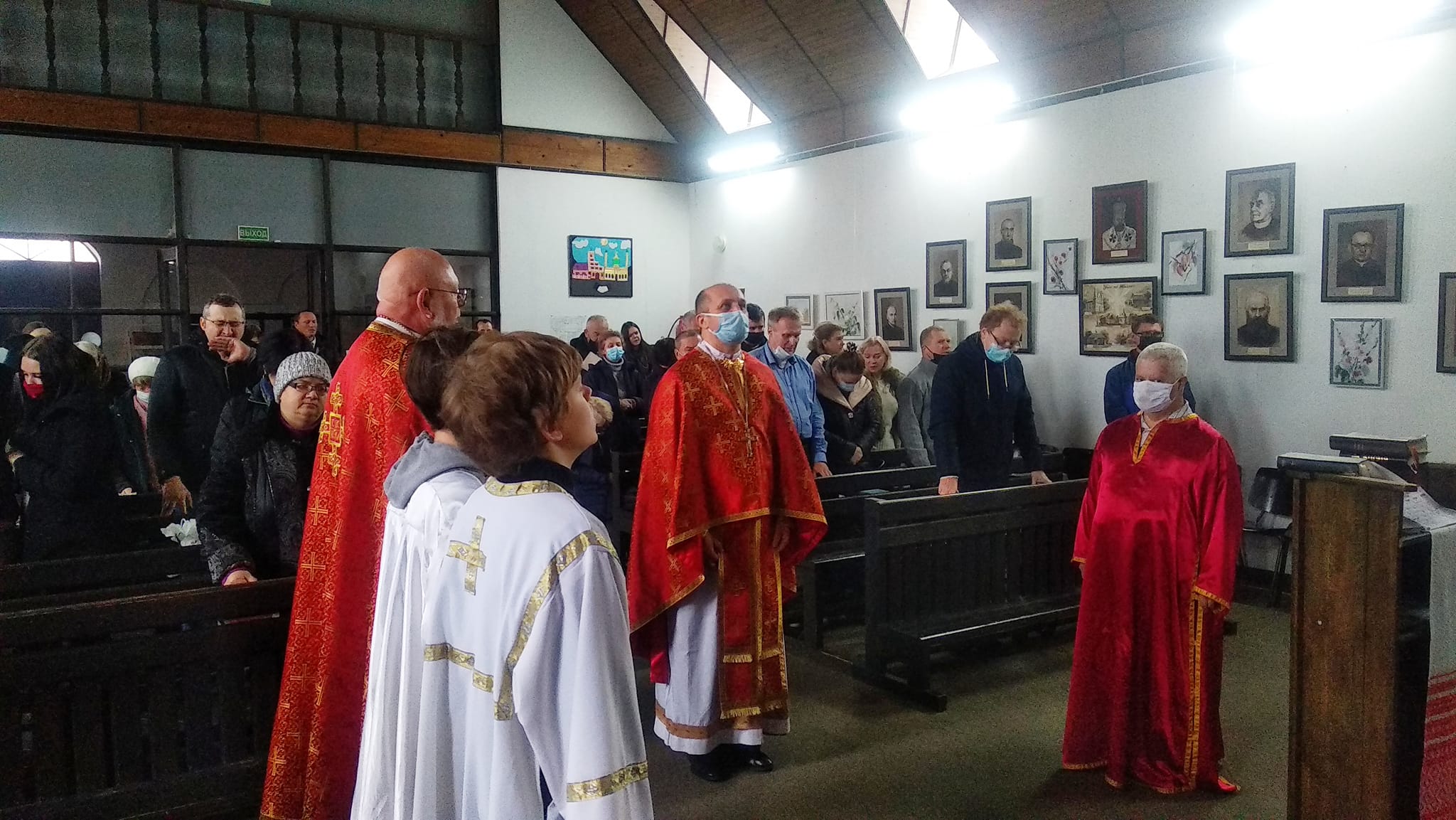 Святар нагадаў таксама пра некаторых сведкаў хрысціянскай любові – айцоў Баляслава Пачопку ды Фабіяна Абрантовіча, партрэты якіх былі нядаўна створаны верніцай парафіі Ганнай Цімашук ды ў рамах выставы “Унія на Палесьсі. Грэка-каталіцкія місіянеры, прапаведнікі і вызнаўцы веры ХХ ст.” упрыгожваюць сцены капліцы свв. братоў апосталаў Пятра і Андрэя.