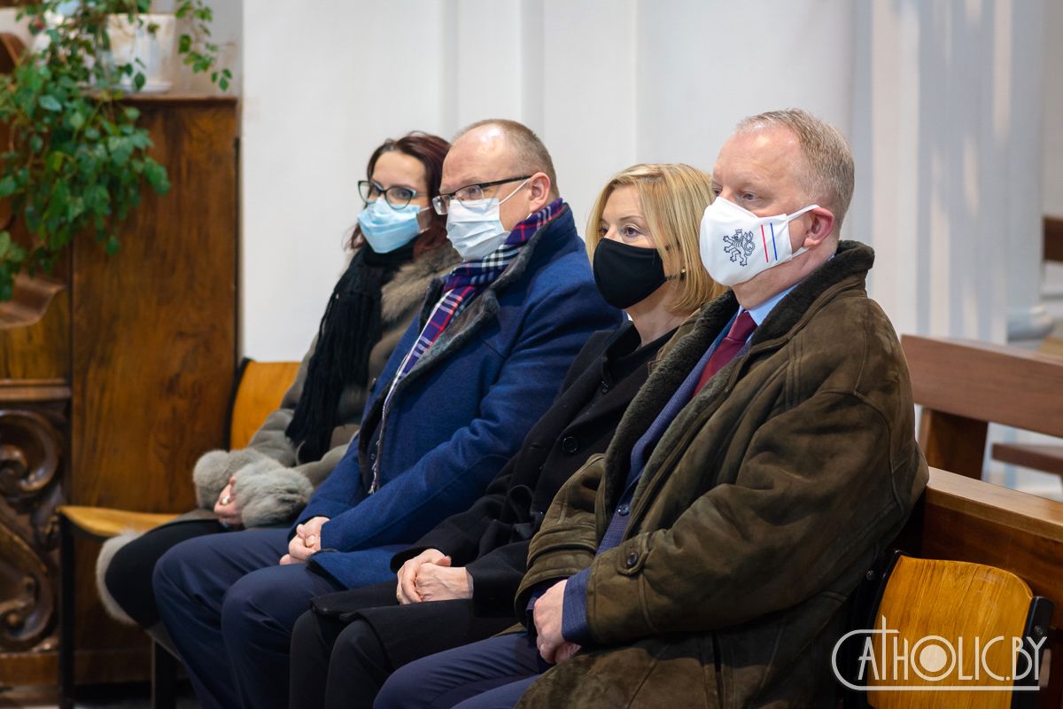 Па запрашэнні біскупа Касабуцкага прысутны ў Чырвоным касцёле аўтар кнігі Уладзімір Паўловіч коратка прадставіў свой твор.