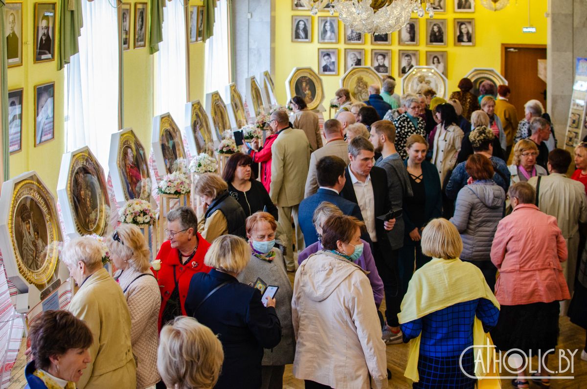 У гэтай святыні копіі ікон будуць знаходзіцца да 20 мая, пасля чаго іх прывітаюць вернікі парафіі святых апосталаў Пятра і Паўла ў Шклове.