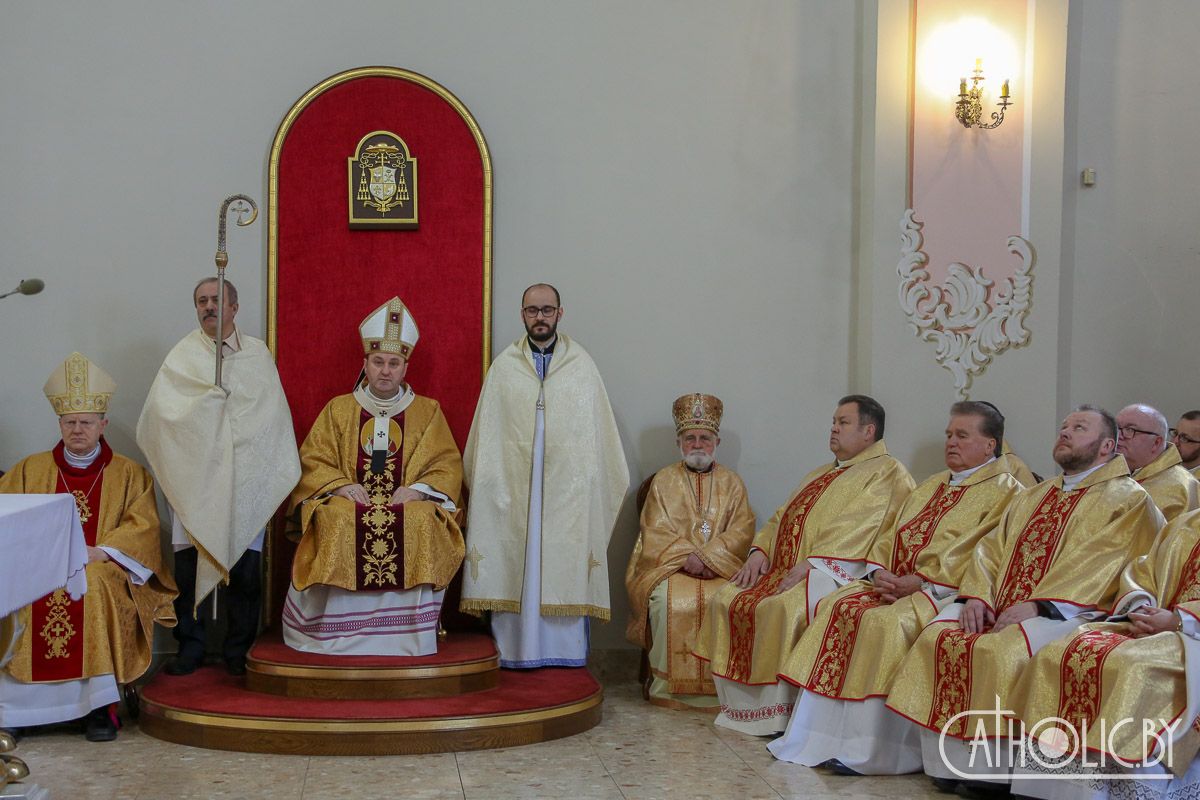 На пачатку святой Імшы іерарх асаблівым чынам прывітаў прысутнага ў катэдры Апостальскага адміністратара католікаў візантыйскага абраду ў Беларусі архімандрыта Сяргея Гаека і ў яго асобе павіншаваў усіх беларускіх грэка-католікаў са з’яўленнем адмысловай касцёльнай структуры, якую нядаўна пажадаў стварыць для іх Святы Айцец Папа Францішак.