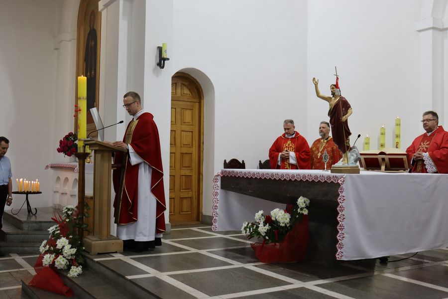 Казанне прамовіў айцец Віктар Жук SJ. Святар звярнуў увагу сабраных на прыклад руплівасці святога Андрэя Баболі ў справе евангелізацыі, а таксама на прыклад мучаніка ў тым, каб быць сапраўдным сведкам Хрыста, сведчыць аб сваёй веры ажно да праліцця крыві.