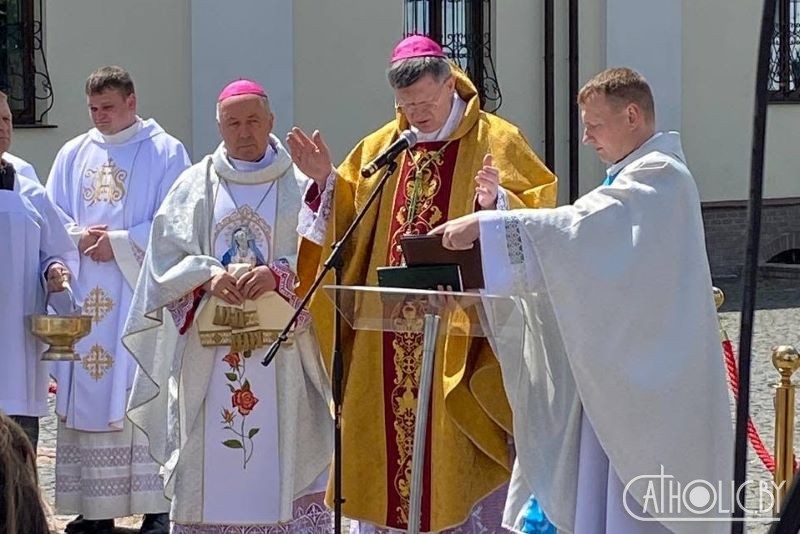 Пасля святой Імшы прадстаўнік Папы Францішка ў Беларусі здзейсніў абрад пасвячэння калоны з фігурай Арханёла Міхала, падчас якога была прачытаная малітва аб заступніцтве Князя нябесных войскаў над Беларуссю.