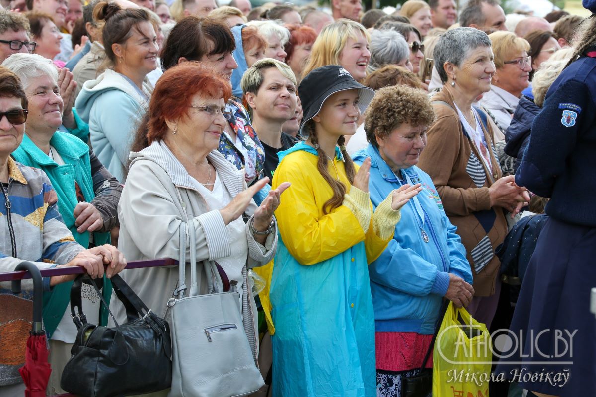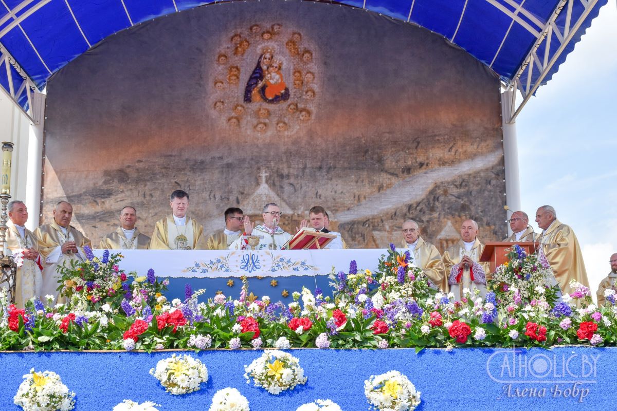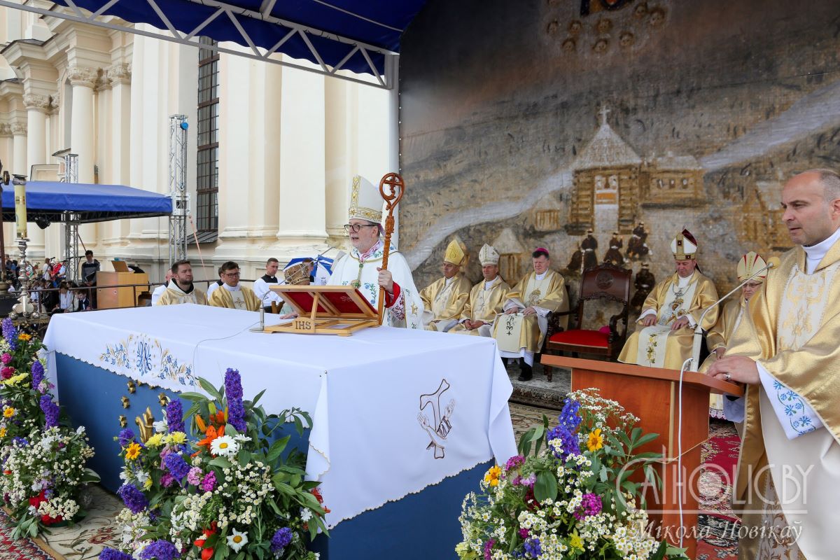 На заканчэнне святой Імшы да прысутных са словам звярнуўся Старшыня Канферэнцыі Каталіцкіх Біскупаў у Беларусі біскуп Віцебскі Алег Буткевіч, які падзякаваў Папу Францішку за вялікую любоў да вернікаў Касцёла на Беларусі і за скіраванага ім на юбілейныя ўрачыстасці Спецыяльнага пасланніка.