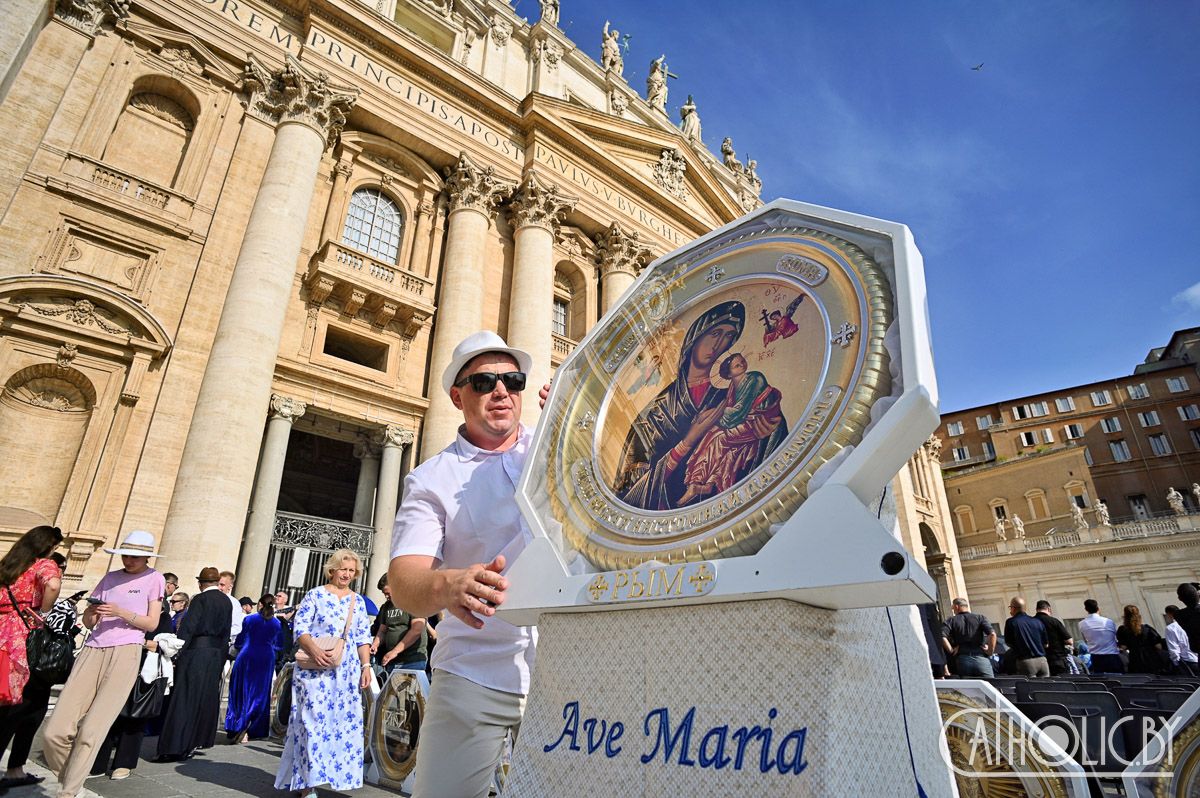 Святы Айцец благаславіў копіі найбольш шанаваных на нашых землях Марыйных абразоў, якія, а таксама атрымаў у дар спіс іконы Маці Божай Будслаўскай.
