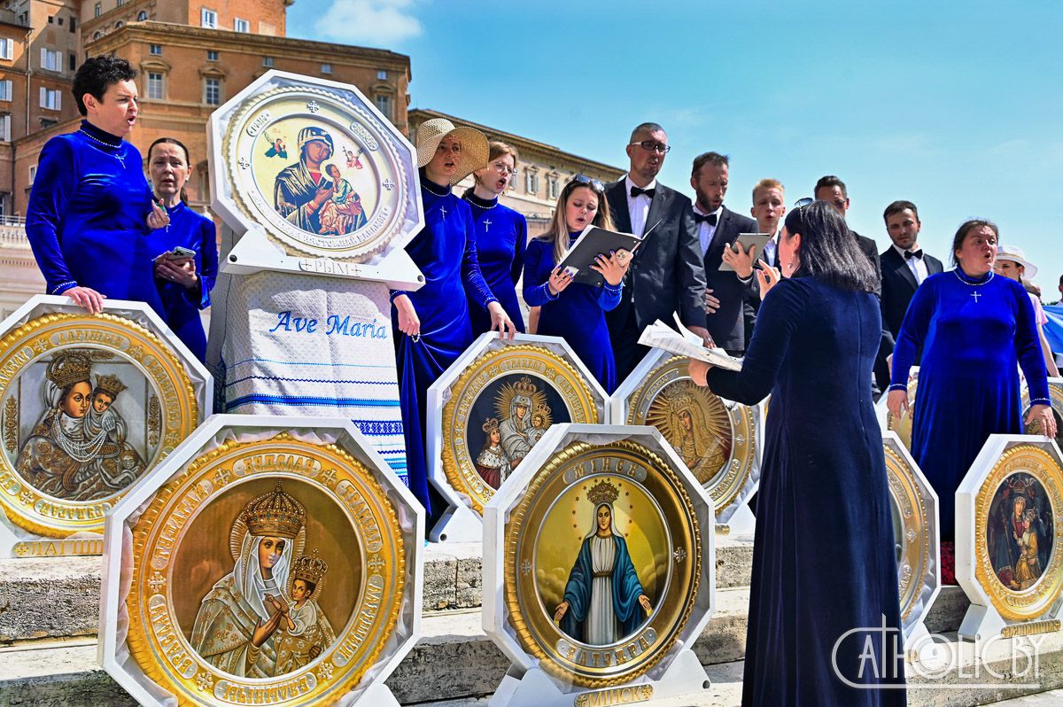 У складзе беларускай дэлегацыі ў Ватыкан прыбыў таксама хор касцёла святых Сымона і Алены ў Мінску «Голас душы», які выканаў некалькі шматгалосных Багародзічных беларускіх спеваў, надаўшы аўдыенцыі больш урачысты характар.