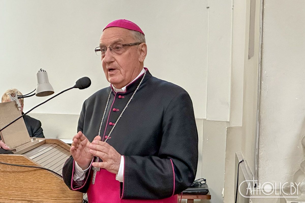 Заслужаны іерарх звярнуў увагу на тое, што, нягледзячы на ўсе складанасці часу, Мінская дыяцэзія, нават калі на практыцы не дзейнічала, ніколі не была кананічна скасавана Апостальскай Сталіцай. Пасля арцыбіскуп таксама выказваўся наконт іншых дакладаў, удакладняў некаторыя моманты і дзякаваў навукоўцам за іх унёсак у захаванне гісторыі Каталіцкага Касцёла ў Беларусі.