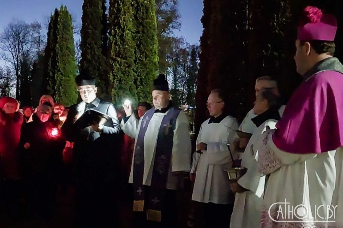 Разам з іерархам, а таксама з Апостальскім адміністратарам для католікаў візантыйскага абраду ў Беларусі архімандрытам Сяргеем Гаекам, ксяндзом канонікам Юрыем Ясевічам і пробашчам ксяндзом Андрэем Сіповічам вернікі розных парафій горада прайшлі ў працэсіі паміж магіл, узгадваючы ў малітве памерлых святароў, бацькоў і продкаў, сваякоў і дабрадзеяў, ахвяр войнаў і загінулых у катастрофах, а таксама ўсіх памерлых і церпячых у чыстцы.