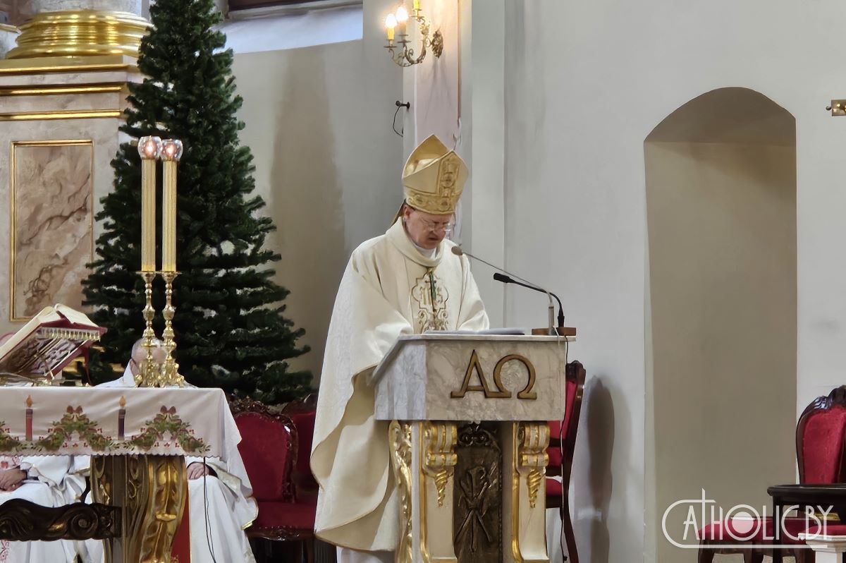 «Дарагія браты і сёстры, мы рыхтуемся адзначыць радаснае свята, калі другая Божая Асоба, Езус Хрыстус, прыняў чалавечае цела і стаўся чалавекам. <…> З Нараджэннем Езуса свет цалкам змяніўся, таму што Хрыстос прыйшоў, каб узвысіць нас, змяніць прыроду, палепшыць яе і ўсё асвяціць. З уцелаўленнем Хрыста чалавек адчувае Божую блізкасць, сяброўства і любоў, якія абуджаюць ў нас хрысціянскую веру», — адзначыў іерарх.