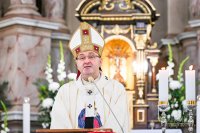 «Заклікаю вас адкрыць сэрцы для Езуса Хрыста праз заступніцтва Марыі, нашай Каралевы. Няхай Яе любоў і заступніцтва вядзе нас, нашыя сем’і, наш Касцёл і ўсю краіну шляхам міру, надзеі і Божай ласкі», — сказаў біскуп Уладзімір Гуляй.