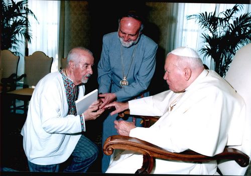 Няма напэўна аніводнага беларуса, беларуска- ці рускамоўнага, які б ня ведаў яго імя, які б не называў яго “дзядзькай Рыгорам”, які б не мог працытаваць хаця б аднаго маленькага радка з ягоных вершаў. Ягоная духоўная паэзія ў асаблівы спосаб важная для нас, хрысьціянаў, католікаў і праваслаўных, бо, прасякнутая шчыра духам еднасьці, яднае адных з другімі, зьяўляючыся мастом між Усходам і Захадам. *** Пасьля аўдыенцыі ў Папы Рыгор напісаў: “Нябёсы дазволілі мне, сьціпламу ўніяту, бачыць і чуць, сказаць словы падзякі аднаму з Абраньнікаў Усявышняга ў Вечным горадзе. Дух трымаў Яго, калі Папа Рымскі нёс крыж свой пакорліва й непахісна”. * * * Дзякуй Усявышняму! Мне выпала адказнае шчасьце перакласьці на беларускую мову “Рымскі трыпціх” Яна Паўла ІІ. Да 25-годдзя пантыфікату Папы пераклад быў выдадзены невялікім накладам пры дапамозе Беларускай Грэка-Каталіцкай Царквы [...]. 28 чэрвеня 2004 г. напярэдадні сьвята Апосталаў Пятра і Паўла Сьвяты Айцец Ян Павал ІІ прыняў нас на асабістай аўдыенцыі ў Ватыкане. Я перадаў Сьвятому Айцу пераклад “Рымскага трыпціху” і прасіў у Папы Апостальскага Блаславеньня для ўсіх прадстаўнікоў беларускай інтэлігенцыі, якія працуюць на разьвіцьцё беларускай хрысьціянскай культуры, працуюць на адраджэньне Беларусі. Сьвяты Айцец пераклаў на мае рукі сваё Блаславеньне, прыняў пераклад і падараваў мне асьвечаны ружанец [...]. Апостальскі Візітатар для беларускіх грэка-католікаў архімандрыт Сяргей Гаек параіў напісаць “Рымскі дыпціх”. І я закончыў дыпціх у мамінай хаце ў Вышачы і даў яму назву “Узрушэньне”. Рыгор Барадулін, Рымскі дыпціх. Узрушэньне, Полацак: Грэка-каталіцкая парафія Сьвятапакутніка Язафата, 2006, старонка 7. |