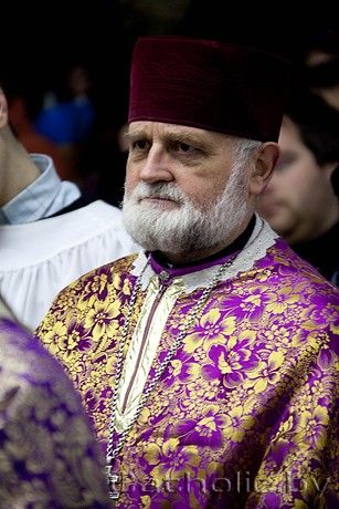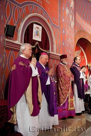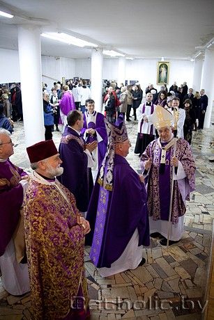 Ïàñüëÿ àäêðûöüöÿ âûñòàâû Âûñîêàäàñòîéíûÿ ÿðàðõ³ ðàçàì ç ïðûñóòíûì³ ñüâÿòàðàì³ ñëóæûë³ ñüâÿòóþ ²ìøó, íà ÿêîé ¡ëàäûêà ̳òðàïàë³ò Òàäýâóø ïðàìîâ³¢ êàçàíüíå äà ¢äçåëüí³êࢠÂåë³êàïîñíûõ ðýêàëåêöûÿ¢, øòî ïðàõîäçÿöü ó ÷ûðâîíûì êàñüö¸ëå.