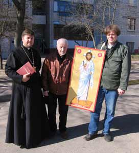 23 красавіка наша парафія ездзіла ў пілігрымку ў Маладэчна на патранальнае сьвята парафіі Хрыста Чалавекалюбцы. Уладыка архімандрыт Сяргей падараваў парафіі ікону Хрыста Чалавекалюбца (усходняе бачаньне Хрыста сьвятой Фаустыны – Ісусе, давяраюся табе) і новы сьвятарскі фелон, вышыты у бела-чырвона-белых колерах Цела і Крыві Хрыстовых. Віншуем нашых братоў і сёстраў з Маладэчна. У рамках парафіяльнага сьвята адбылася прэзентацыя кніжкі народнага паэта Рыгора Барадуліна “Рымскі дыпціх”, якую паэт напісаў, як падзяку Госпаду пасьля пілігрымкі ў Рым і сустрэчы са Слугой Божым Янам Паўлам ІІ.