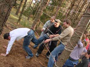 У нейкіх дзьвюх гадзінах дарогі ад Менску ёсць месцайка, якое было б, без сумніваў, цікавым для любога кіраўніка. Глядзелі "Форт Байярд"? Вось самае яно. У лесе створана траса, якую праходзіць некалькі камандаў (каманда звычайна да 12 чалавек, гледзячы па адчуваньнях). Калі ўдзельнікаў больш, яны разьбіваюцца на большую колькасьць камандаў. Праграма ўяўляе сабою цыкл перашкодаў, якія трэба прайсьці камандзе (абсалютна моўчкі) цалкам і кожнаму з сяброў каманды паасобку. Пачуцьцё локця, адказнасьць за іншага чалавека - на трэнінгу ў гэтыя, досыць замыленыя, паняцьці ўкладваецца жывы сэнс